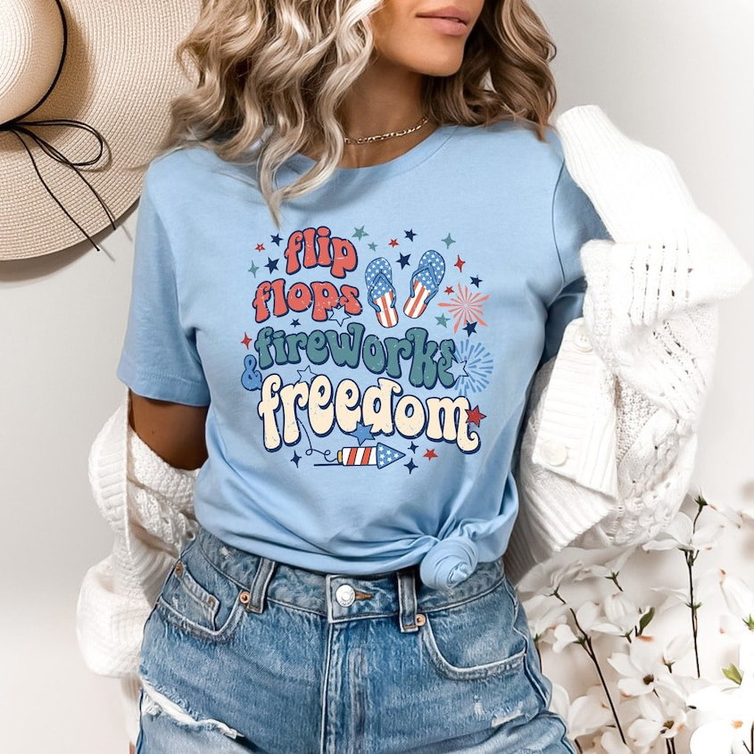 Flip Flops,Fireworks,Freedom Shirt, Patriotic Shirt, Fourth of July Shirt, 4th of July Shirt, Independence Day Shirt, Memorial Day - NL0425